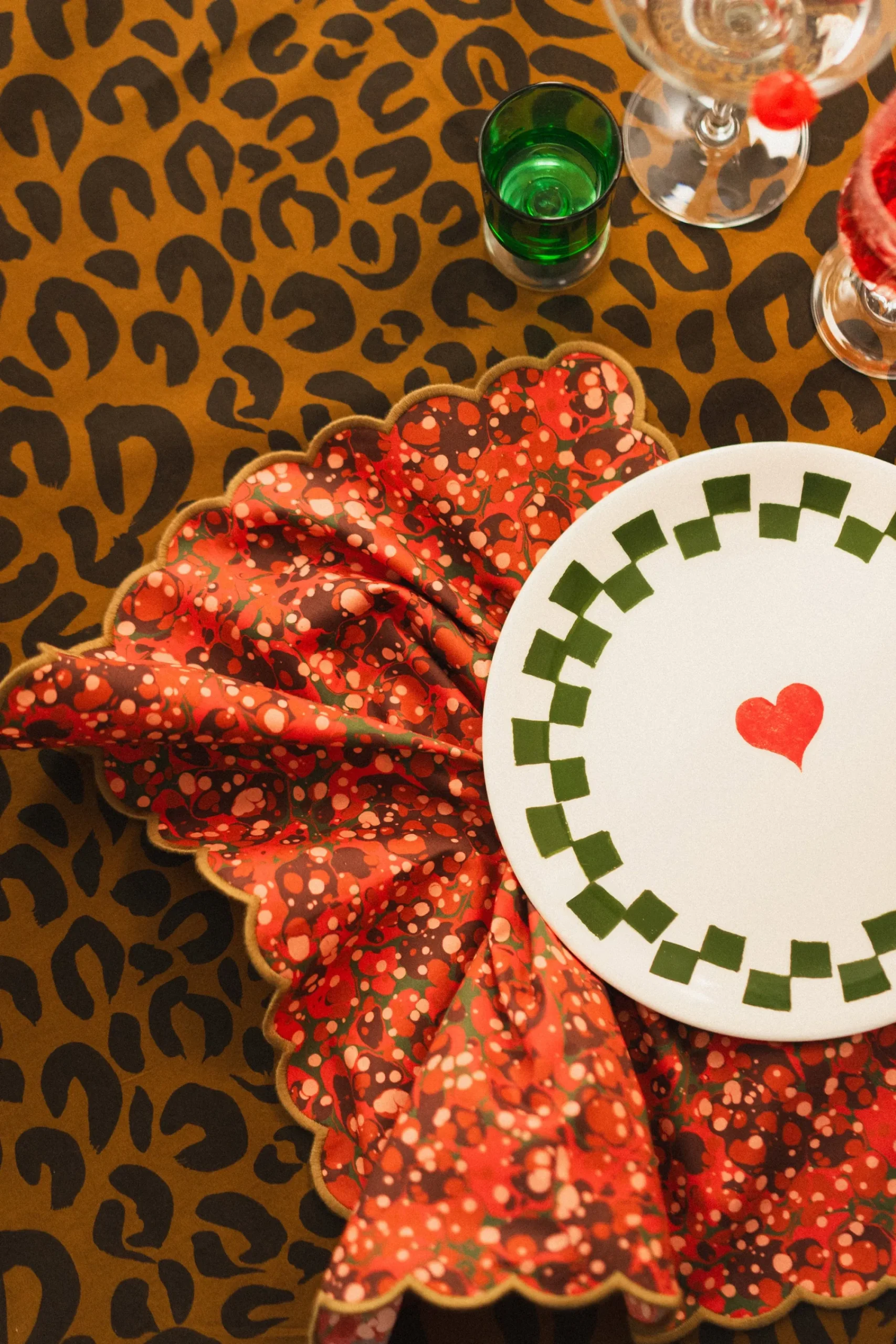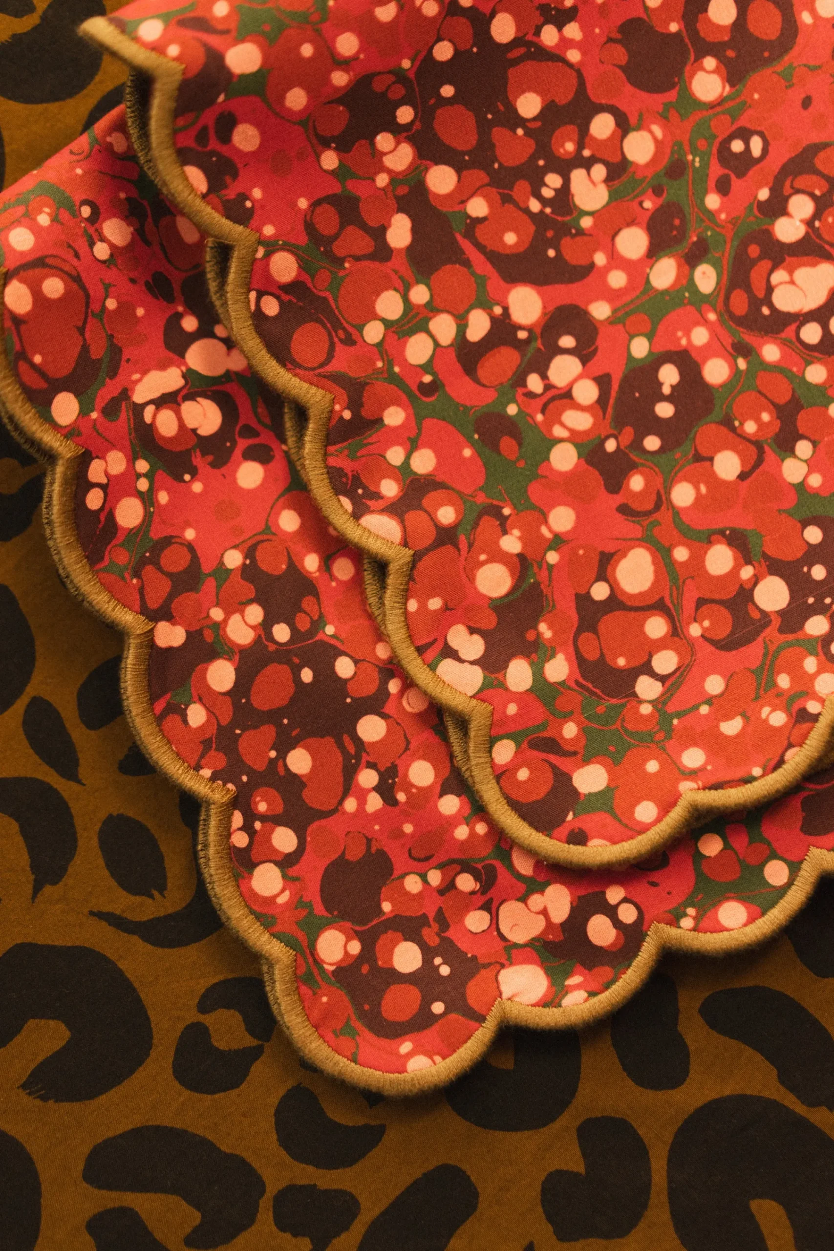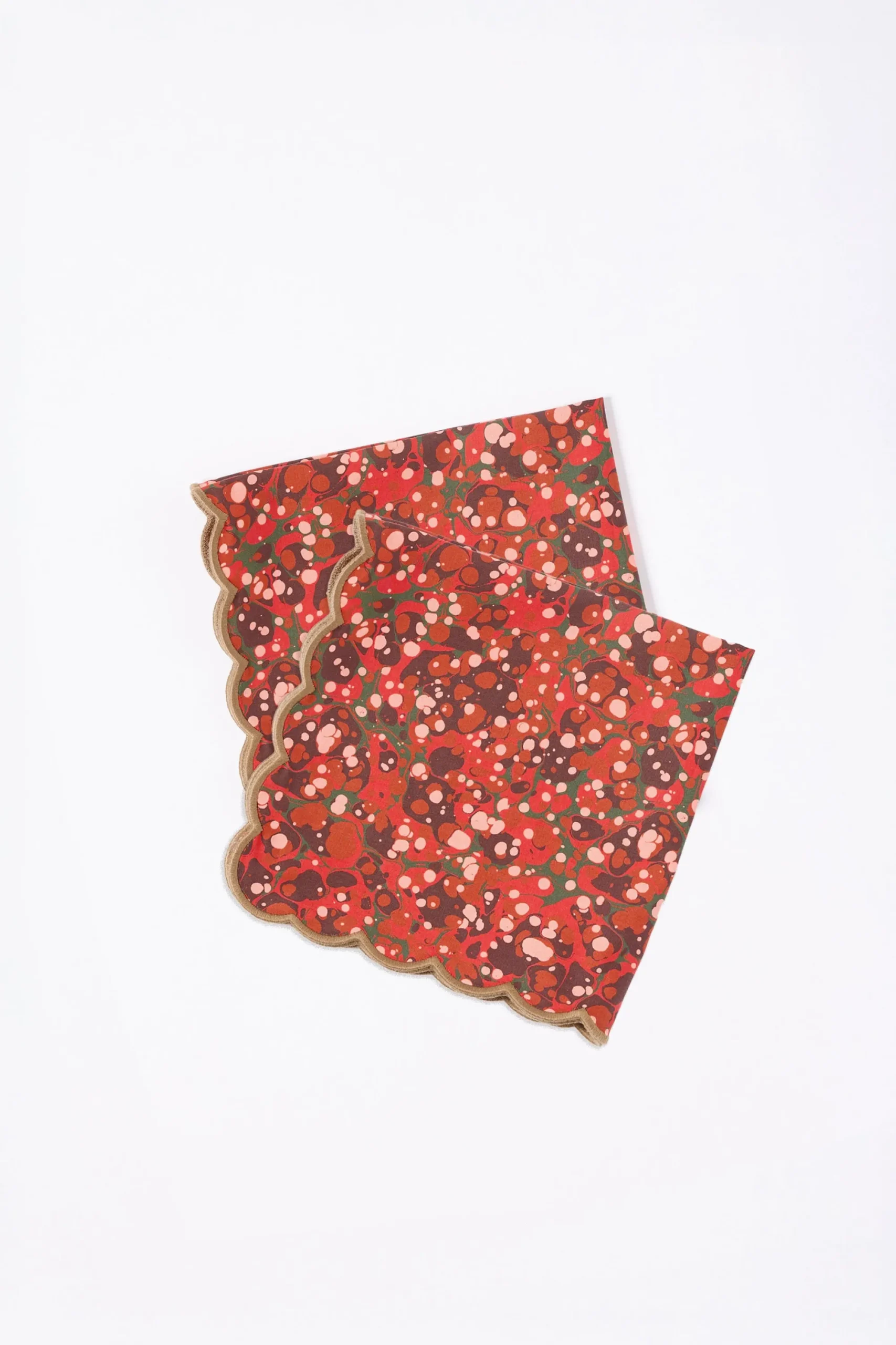 Lot de deux serviettes de table avec bords festonnés contrastant avec une broderie fil.