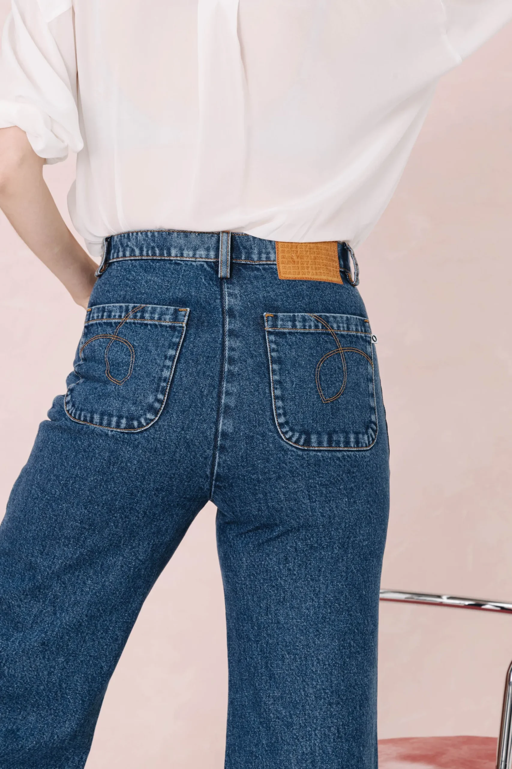 📍Conseil taille : Prenez votre taille habituelle de jean. Nous vous conseillons de vous référer à votre tour de taille et de hanches et de choisir en fonction de la mesure la plus forte. La matière denim va se détendre et s’assouplir au fur et à mesure des portés.