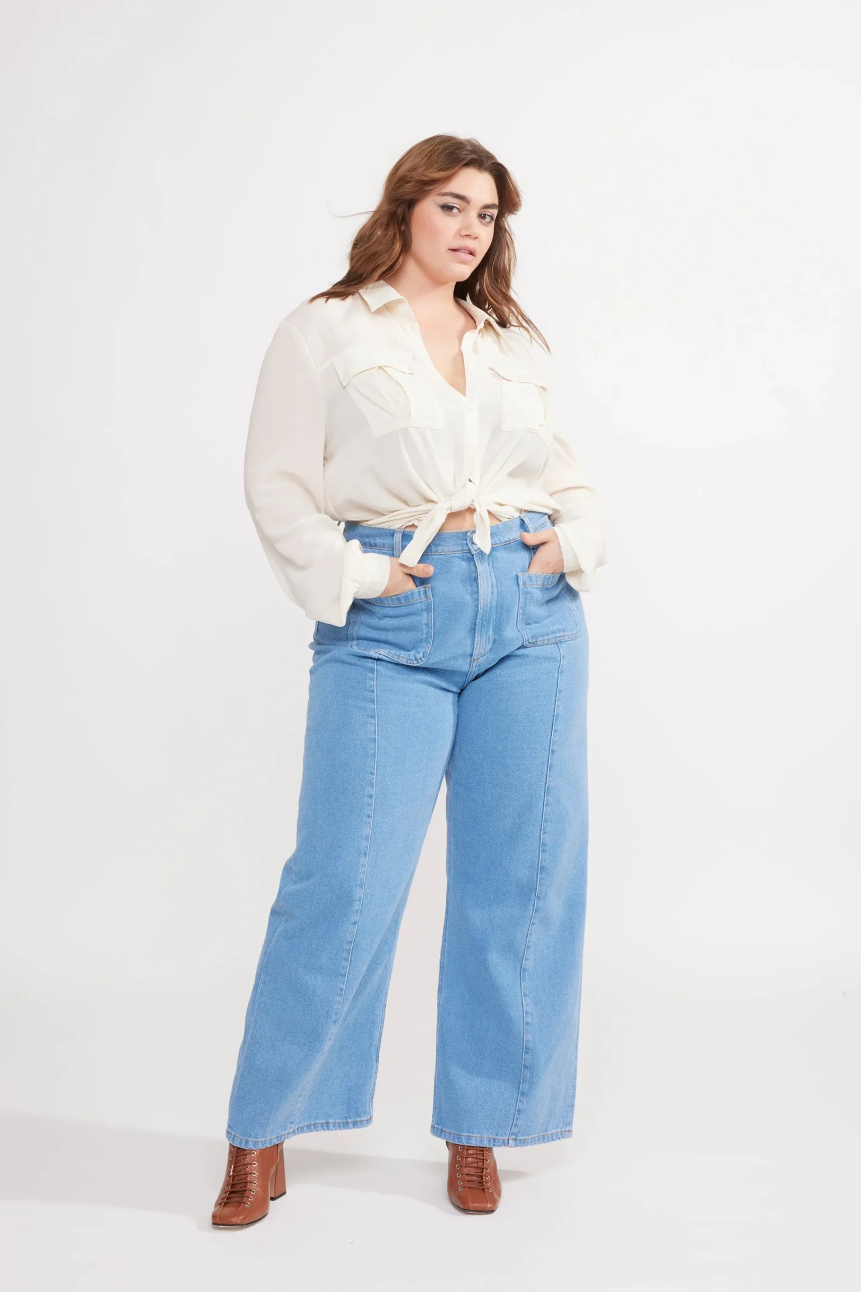 Votre coup de ❤️ revient en version Light blue ! Avec sa taille haute et sa jambe large, le jean Rio fait l’unanimité.