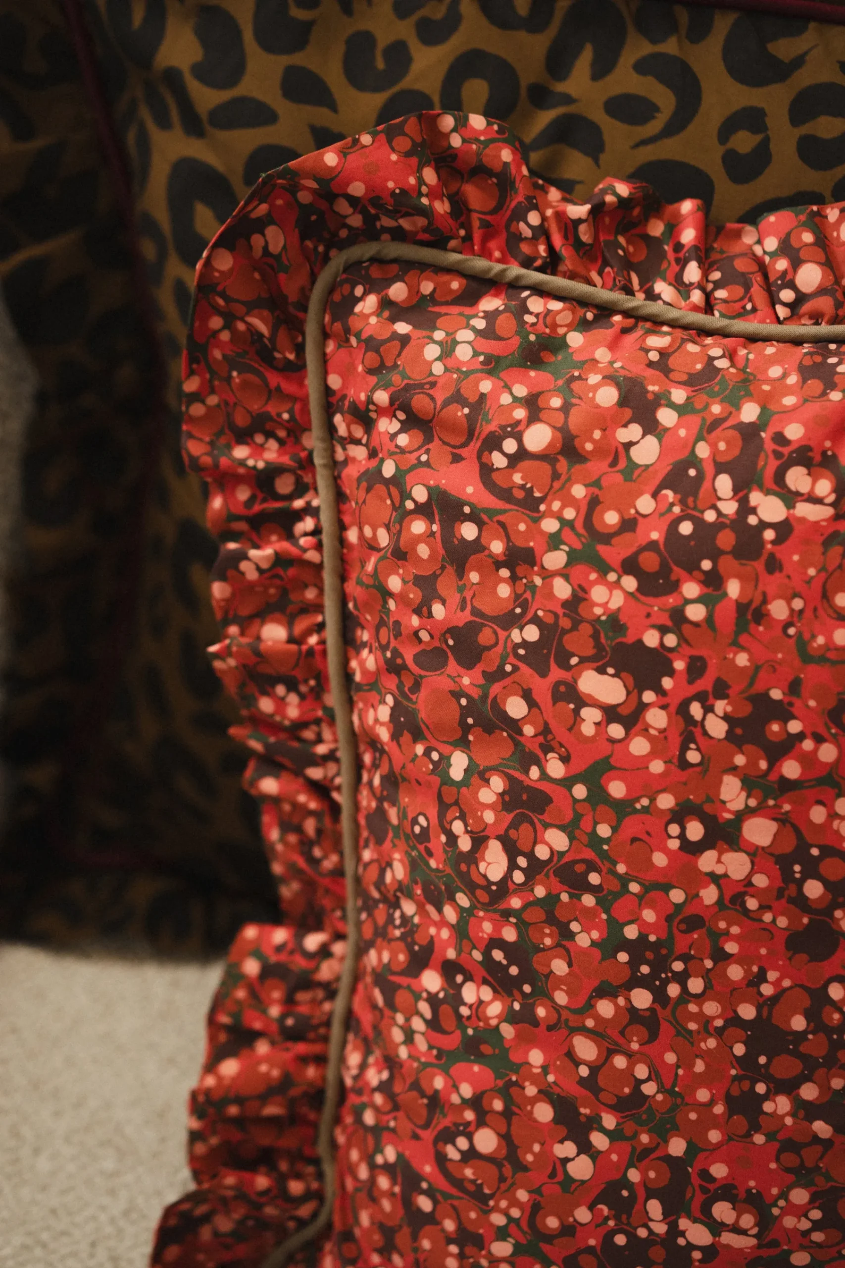 Coussin carré qui s’ouvre sur le dessous à l’aide d’un zip invisible.