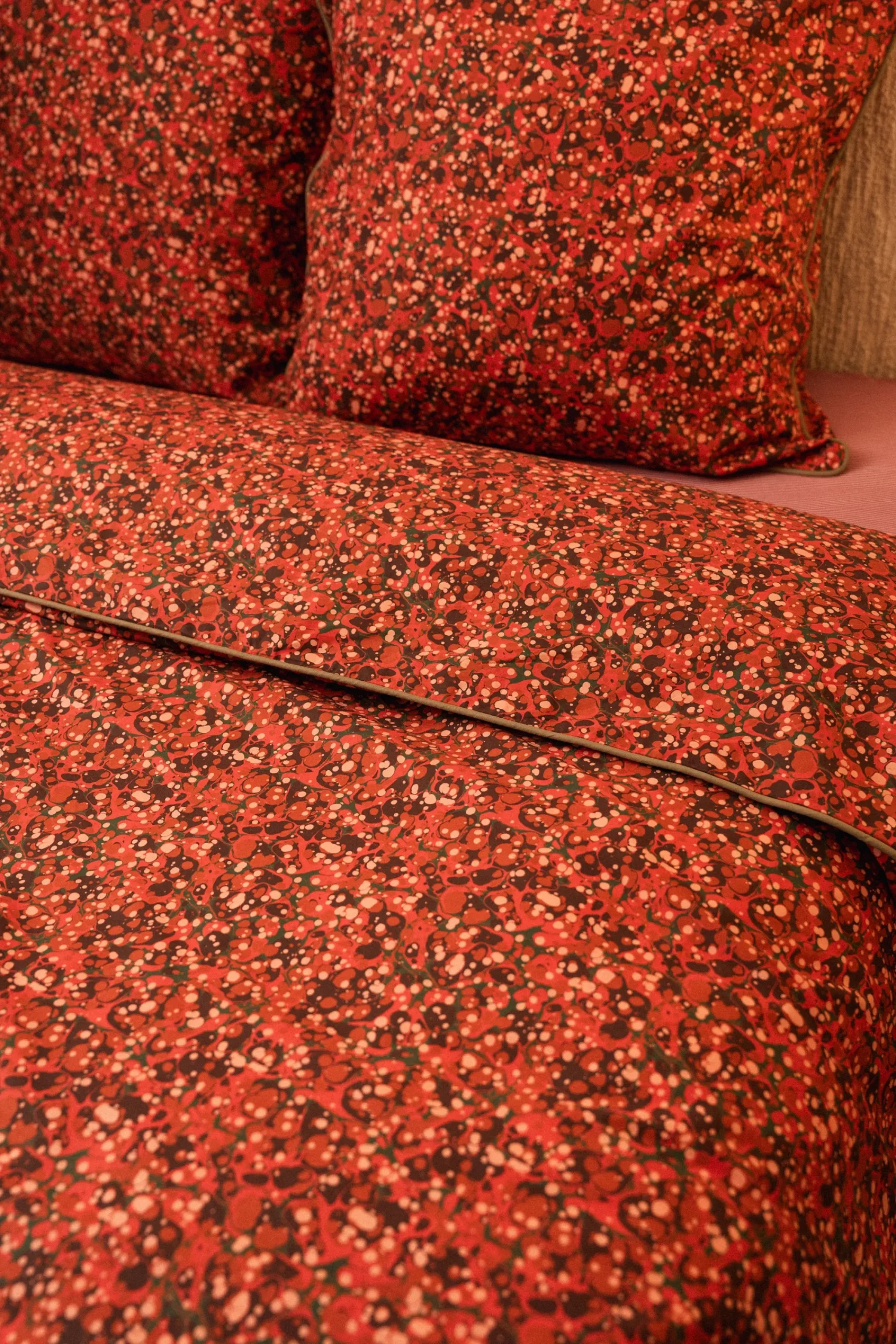 Housse de couette composée à 100% de percale de coton, tissé avec 80 fils/cm2. Lavage à 30° délicat/ laver avec des coloris similaires / Pas d’essorage / Repassage doux / Pas de javel / Pas de sèche-linge / Pressing autorisé.