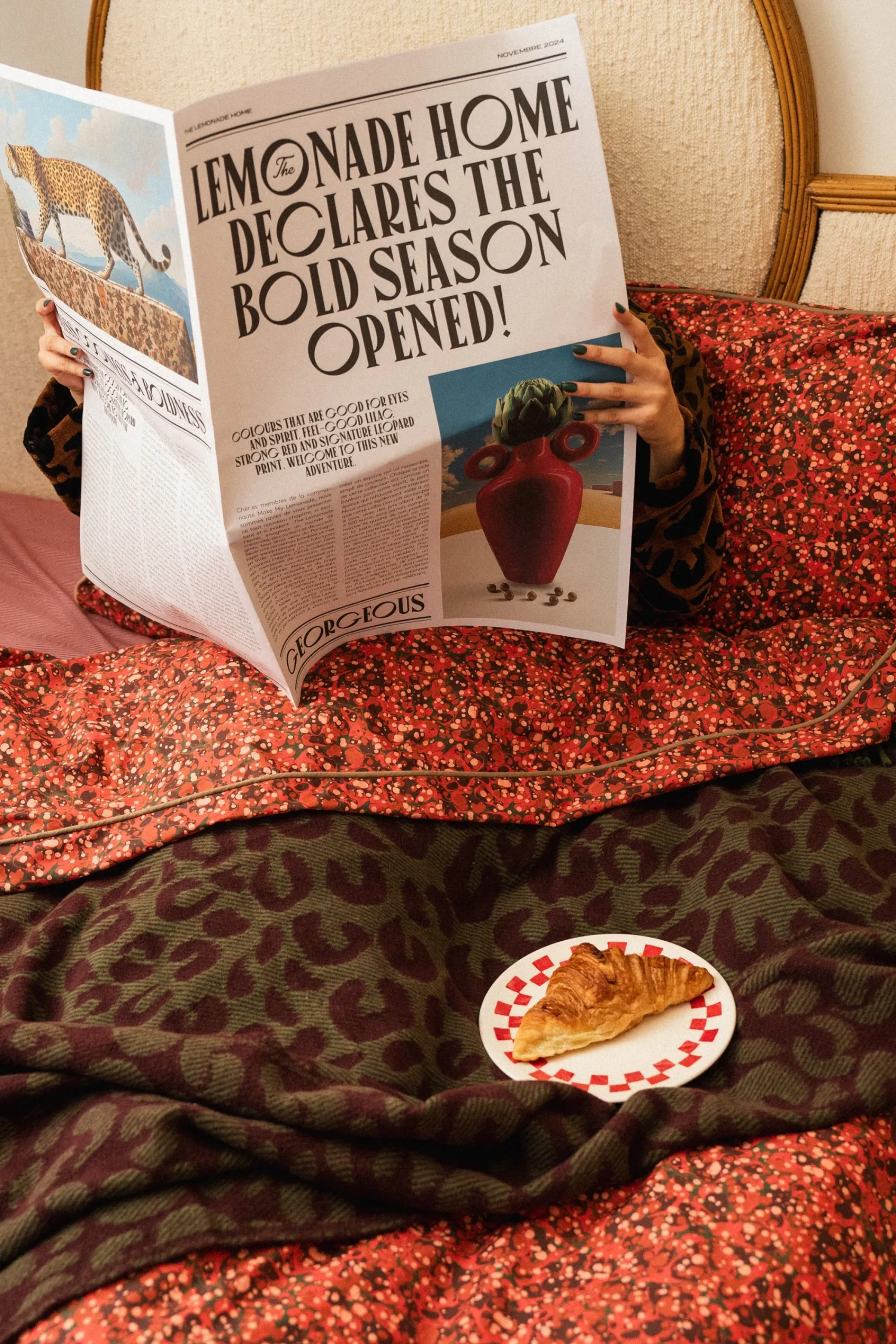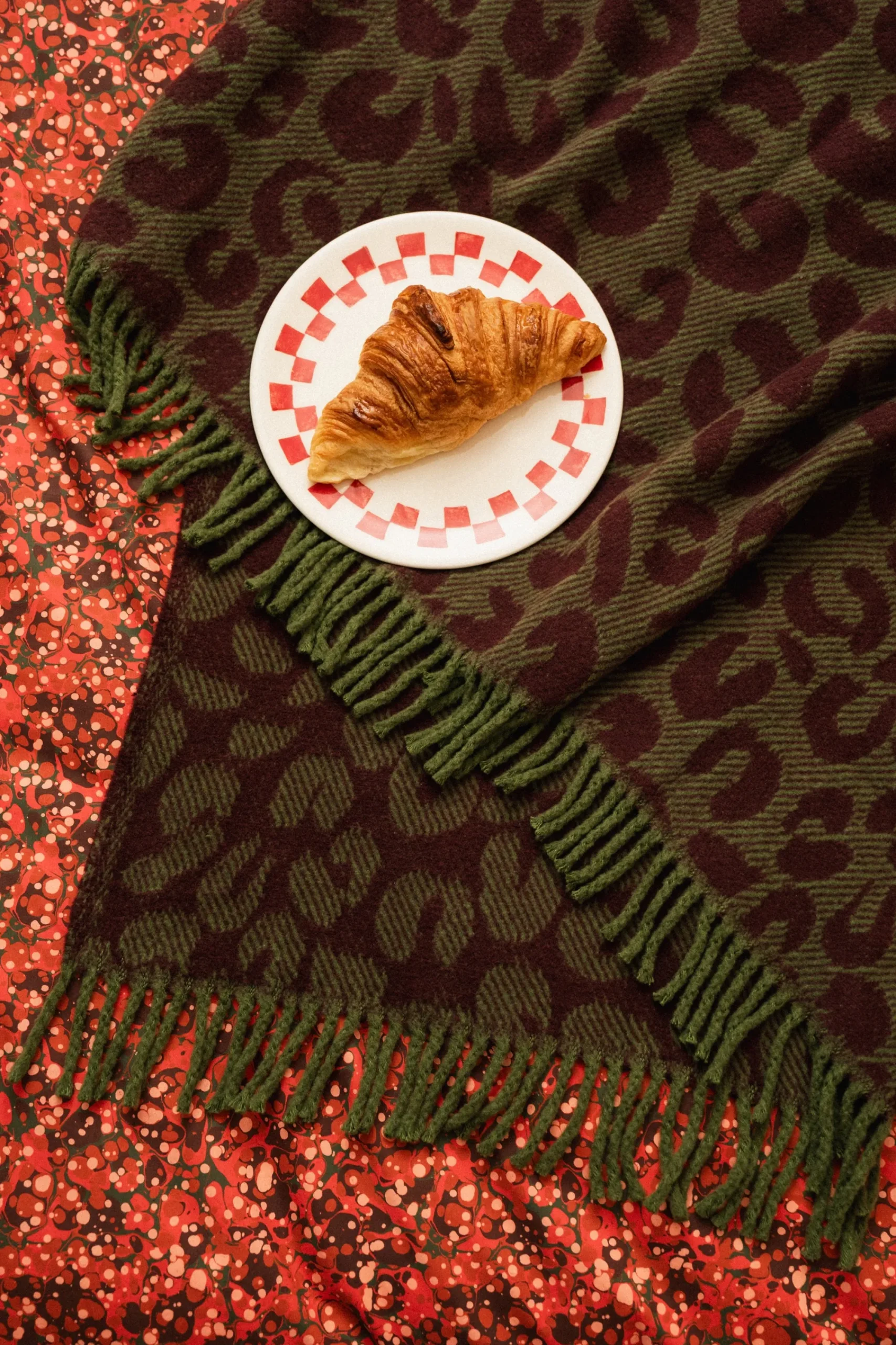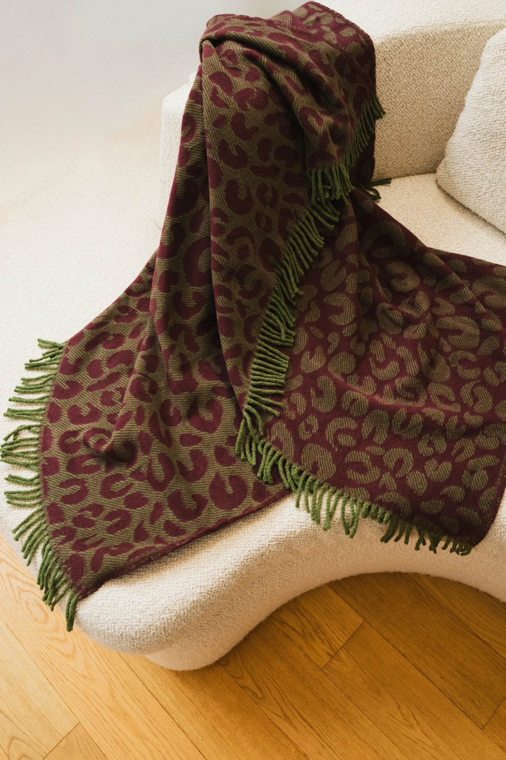 Plaid en jacquard léopard. Dimensions : 140cm x 180cm