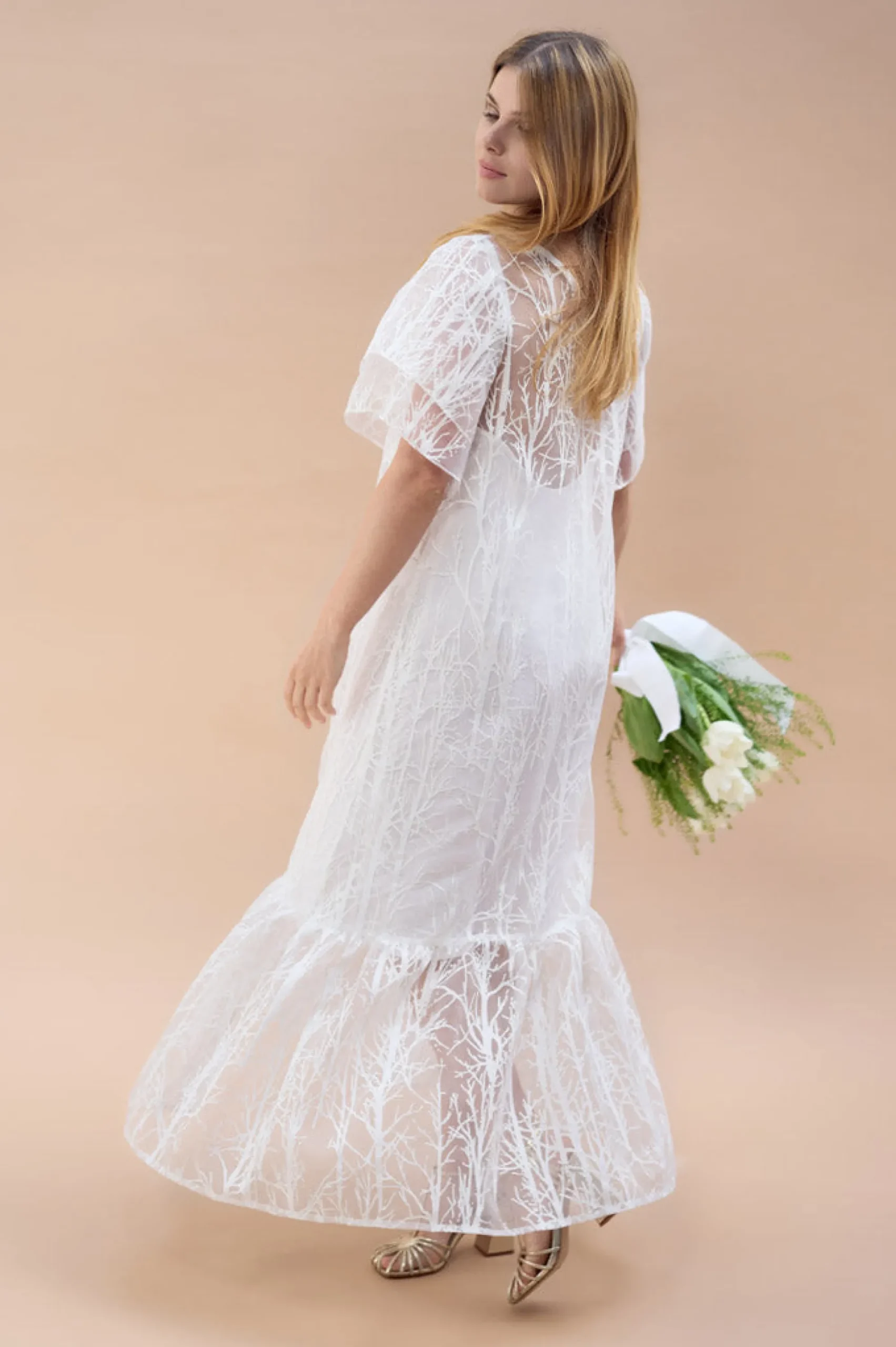 Voici Karla, la robe qui joue avec la transparence. Sa coupe droite et ses larges double manches lui permettent de rester confortable tout au long de la journée. Elle est finie en bas par un large volant froncé au niveau du genou. Karla vient aussi avec son fond de robe longueur genoux et ses bretelles sont réglables !