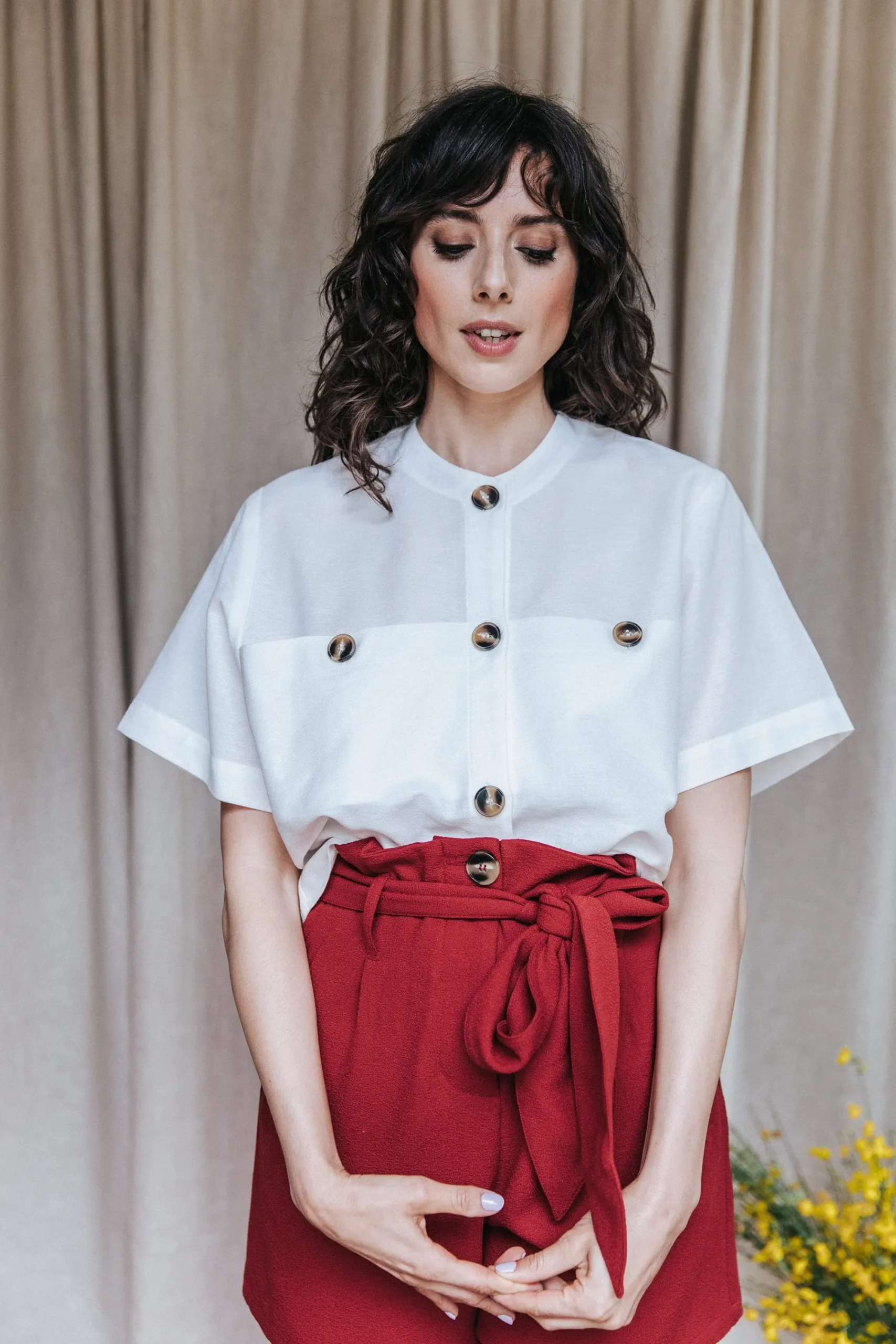 Voici Vadim, le petit top à décliner à l’infini pour l’été, facile à faire et à transformer. Accrochez-lui une jupe ou un pantalon, modifiez ses manches, raccourcissez-le, bref amusez-vous !