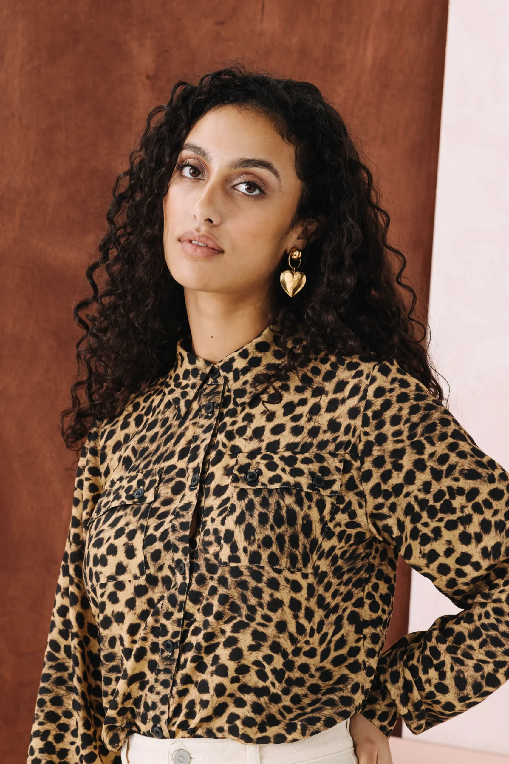 Chemise col classique à manches longues, fermée par de petits boutons sur le devant. Au niveau de la poitrine et sous l’empiècement, deux poches plaquées et rabat, fermées par deux boutons. Au dos et sous l’empiècement, un pli rond.
