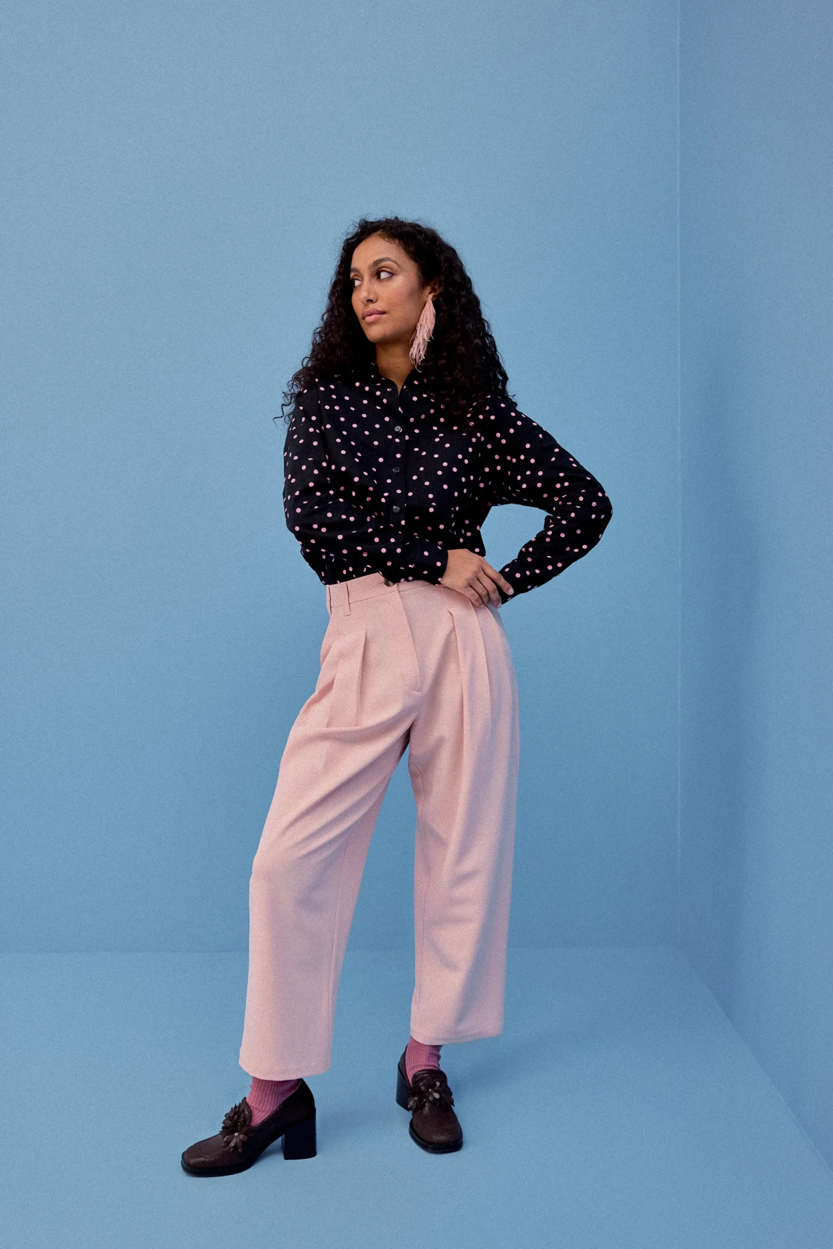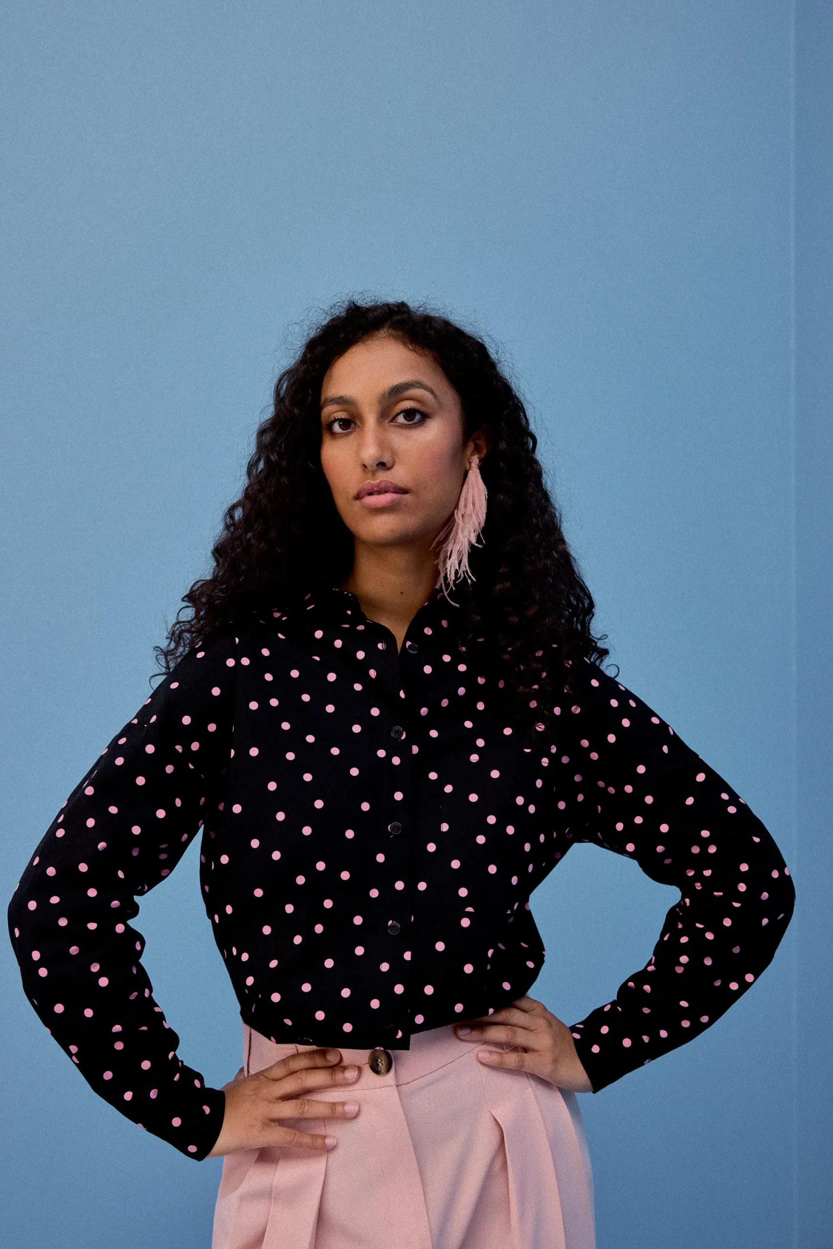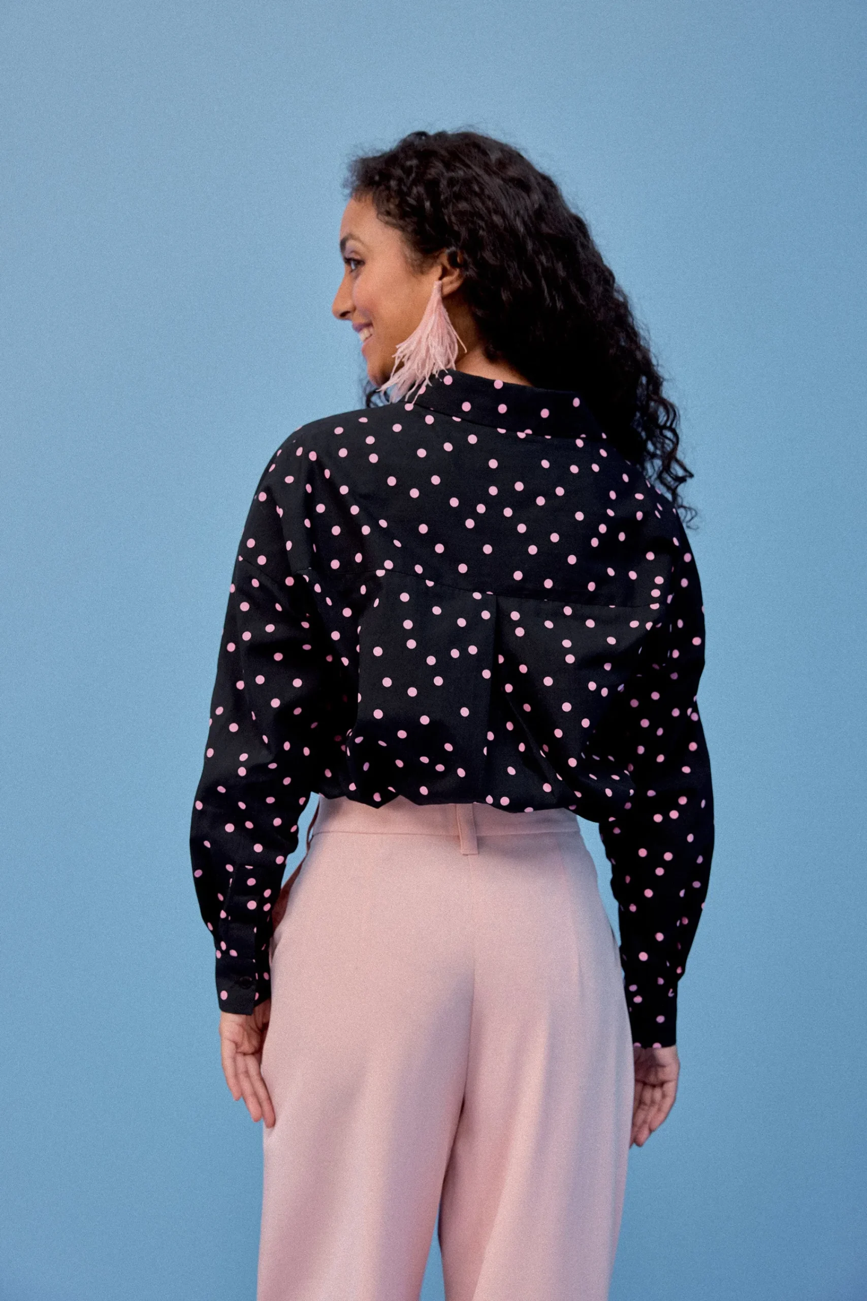 Chemise à manches longues, col classique, fermée par une patte de boutonnage avec des petits boutons chemise. Poche plaquée sur le devant gauche. EmpiÚcement au dos avec pli creux. Bas de manche avec un poignet fermé par un bouton chemise. Coupe arrondie en bas.