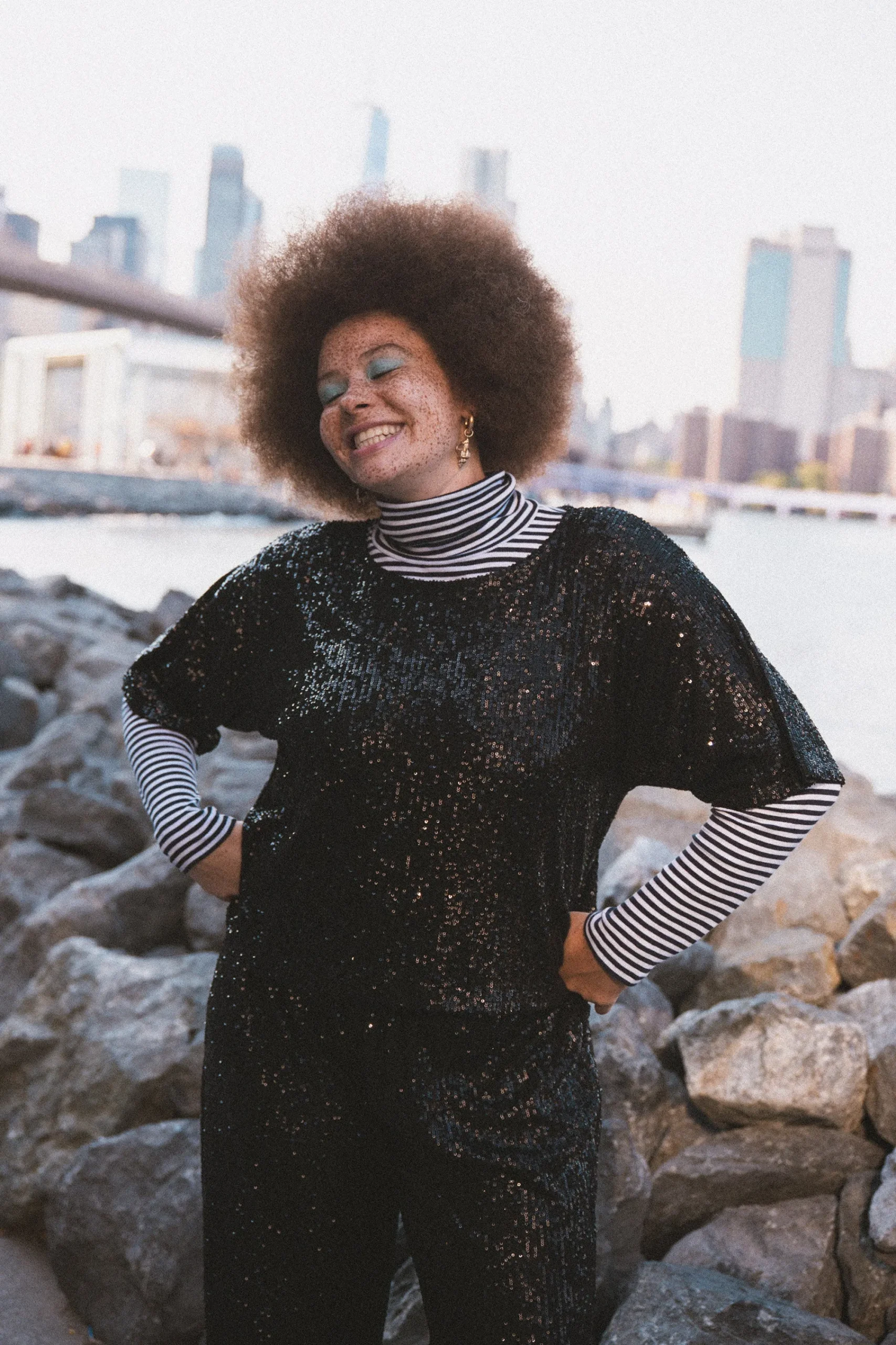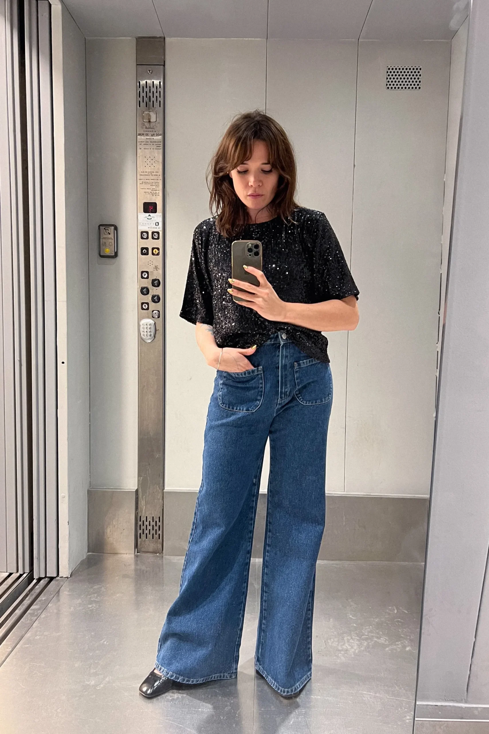 - En couple avec le pantalon Sam sequins noirs