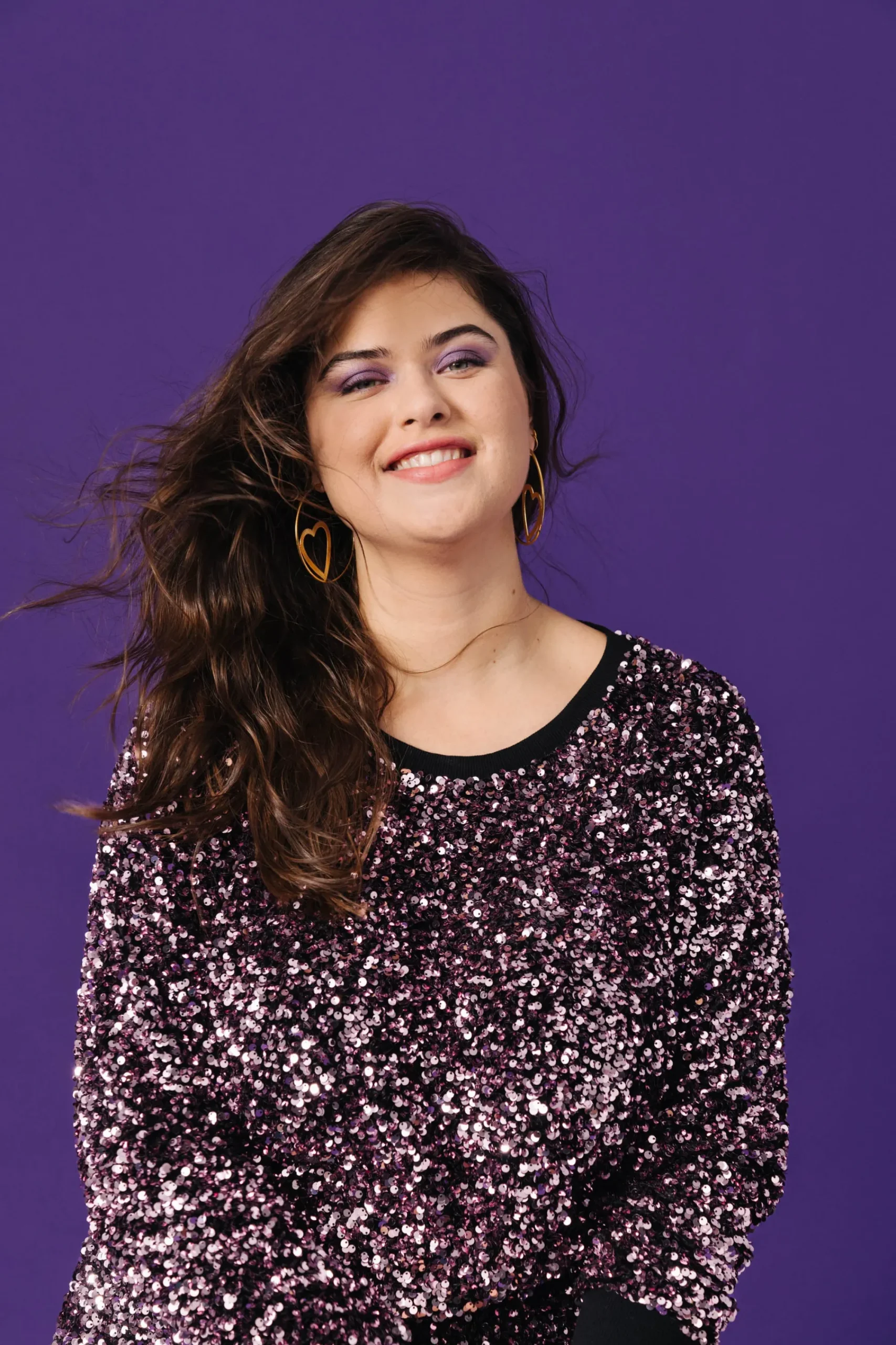 Sweat en sequin entièrement doublé dans un jersey doux. Coupe confort. Encolure arrondie. Longueur en dessous de la taille. Col, bas de manche et ceinture avec bord côtes.