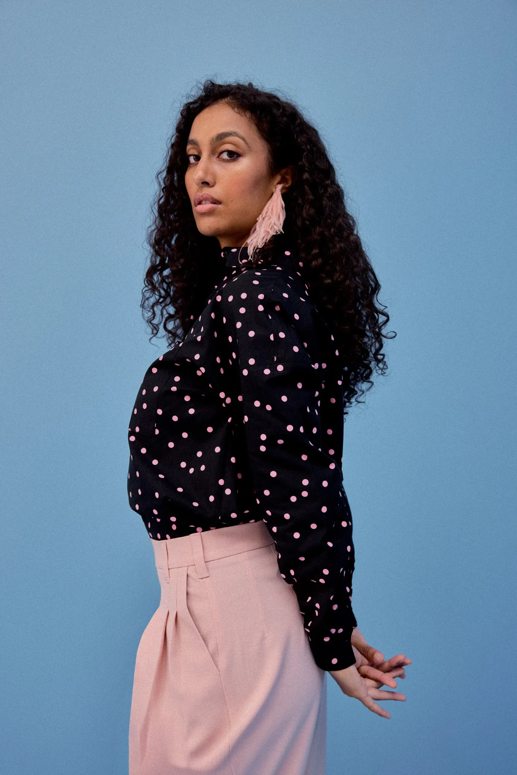 Chemise à manches longues, col classique, fermée par une patte de boutonnage avec des petits boutons chemise. Poche plaquée sur le devant gauche. EmpiÚcement au dos avec pli creux. Bas de manche avec un poignet fermé par un bouton chemise. Coupe arrondie en bas.