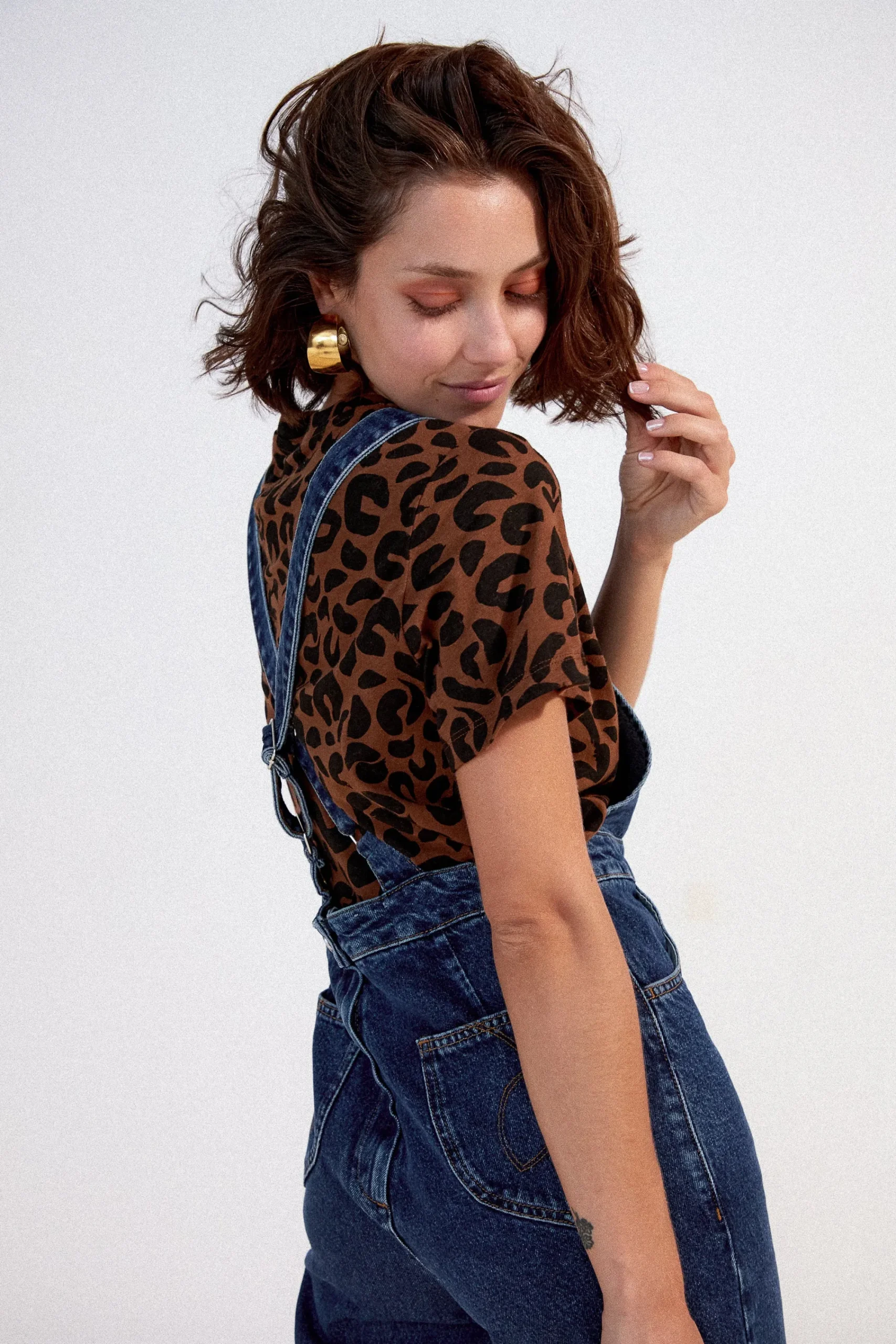 T-shirt classique, coupe ample à encolure ronde et manches courtes. Imprimé Léopard. Petit logo brodé au fil blanc sur le devant, en dessous du cou. Longueur petites hanches.